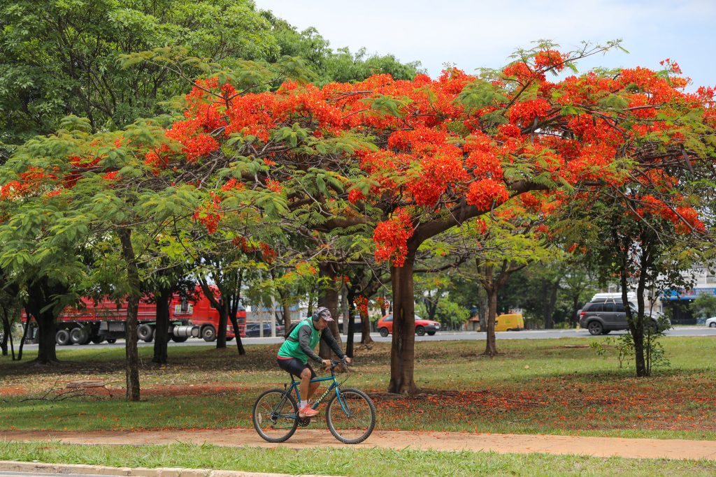 Com quase 100 mil árvores da espécie, o vermelho impera em várias regiões do Distrito Federal neste início de outubro.