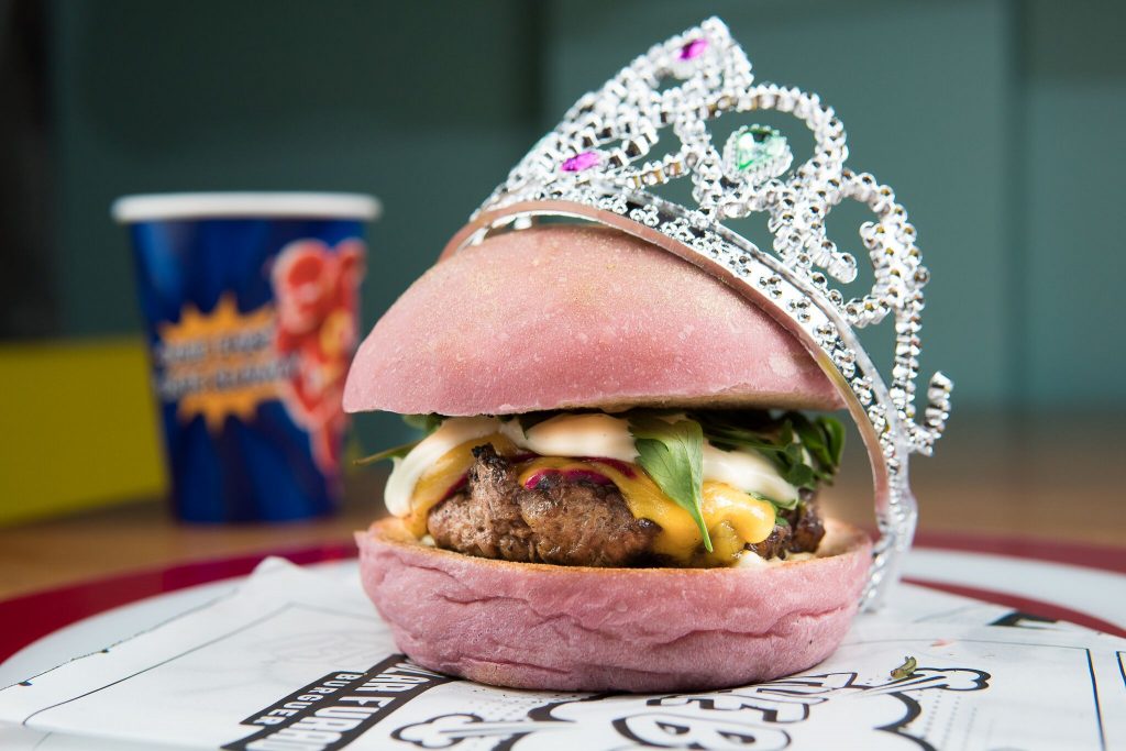 O Mickey Mouse (R$ 16,90), indicado para as crianças, é feito com pão brioche, carne de 80g, queijo e molho especial de tomate fresco batido. Queridinho entre as meninas e as mulheres, o burger Princesas (R$ 24,90) é preparado com pão brioche rosa colorido com beterraba e polvilhado com pó dourado, 160g de blend da casa, queijo, maionese tradicional, salada de ervas e brotinhos de rúcula. E ainda vem com coroa de brinde.
