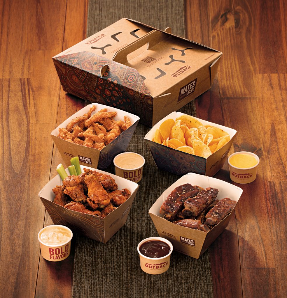 O Outback Steakhouse reforça o happy hour em casa. A marca de temática australiana reuniu porções realmente generosas em um único combo e apresenta o Mates Box, uma caixa repleta de sabores que serve de quatro a seis pessoas.