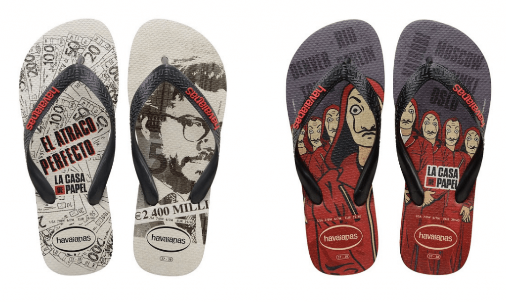 Havaianas e Netflix lançam duas sandálias com o grande sucesso espanhol de La Casa de Papel. Com parceria iniciada em 2018, quando lançaram uma edição especial e exclusiva de Stranger Things para o evento da CCXP, em São Paulo, as marcas perceberam o interesse do público nessa collab e trouxeram também mais duas novas estampas sobre a série dos anos 80.