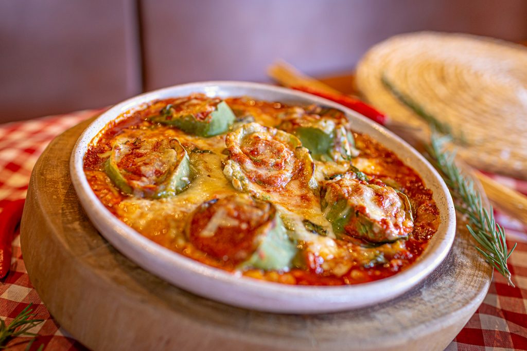 Com cardápio variado que contempla clássicas receitas italianas, a casa oferece saladas, antepastos, sopas, pastas recheadas, pastas, risotos e é claro as pizzas assadas em forno à lenha, além de deliciosas sobremesas. Entre as opções, destaque para o trio de brusquetas (brie com geleia de damasco e amêndoas laminadas; 3 cogumelos com queijo de cabra; e a de tomate Roma, cebola roxa, alho e azeite com manjericão fresco – R$ 41,90) e para as sopas de tomate italiano com bacon defumado – R$31,90; a de abóbora com gengibre e mel – R$ 31,90; e também a de batata baroa com frango e brócolis – R$35,90.