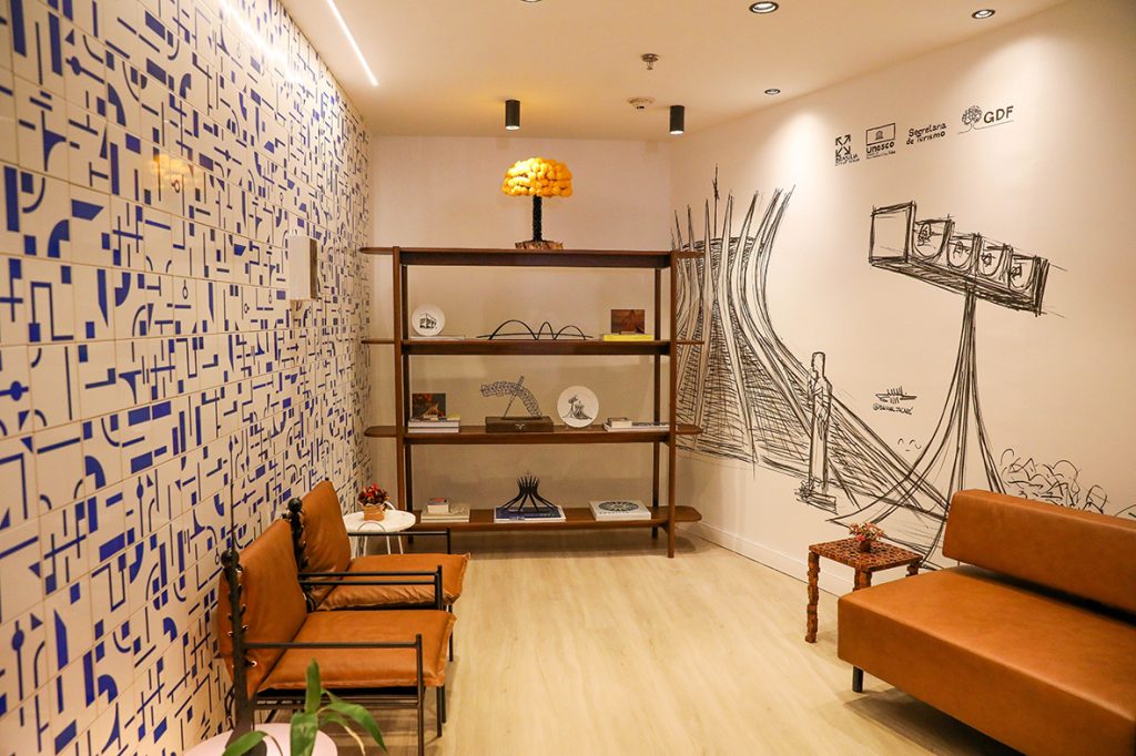 O contato dos turistas com Brasília começa antes mesmo de sair do Aeroporto de Brasília. Ainda na sala de retirada de bagagens, os visitantes encontram um CAT com o novo design, que traz referências culturais da cidade para a concepção dos móveis e da decoração — fruto da parceria com a Associação de Designers de Produto do Distrito Federal (Adepro). A manutenção nas estruturas contou com um investimento de R$ 290 mil e garante mais conforto e eficiência no atendimento.