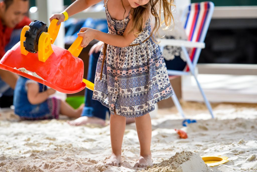 São oito toneladas de areia, uma piscina com cem mil bolinhas e baldinhos e pás para a criançada fazer castelinhos na areia e toda a diversão que acontece nos balneários.