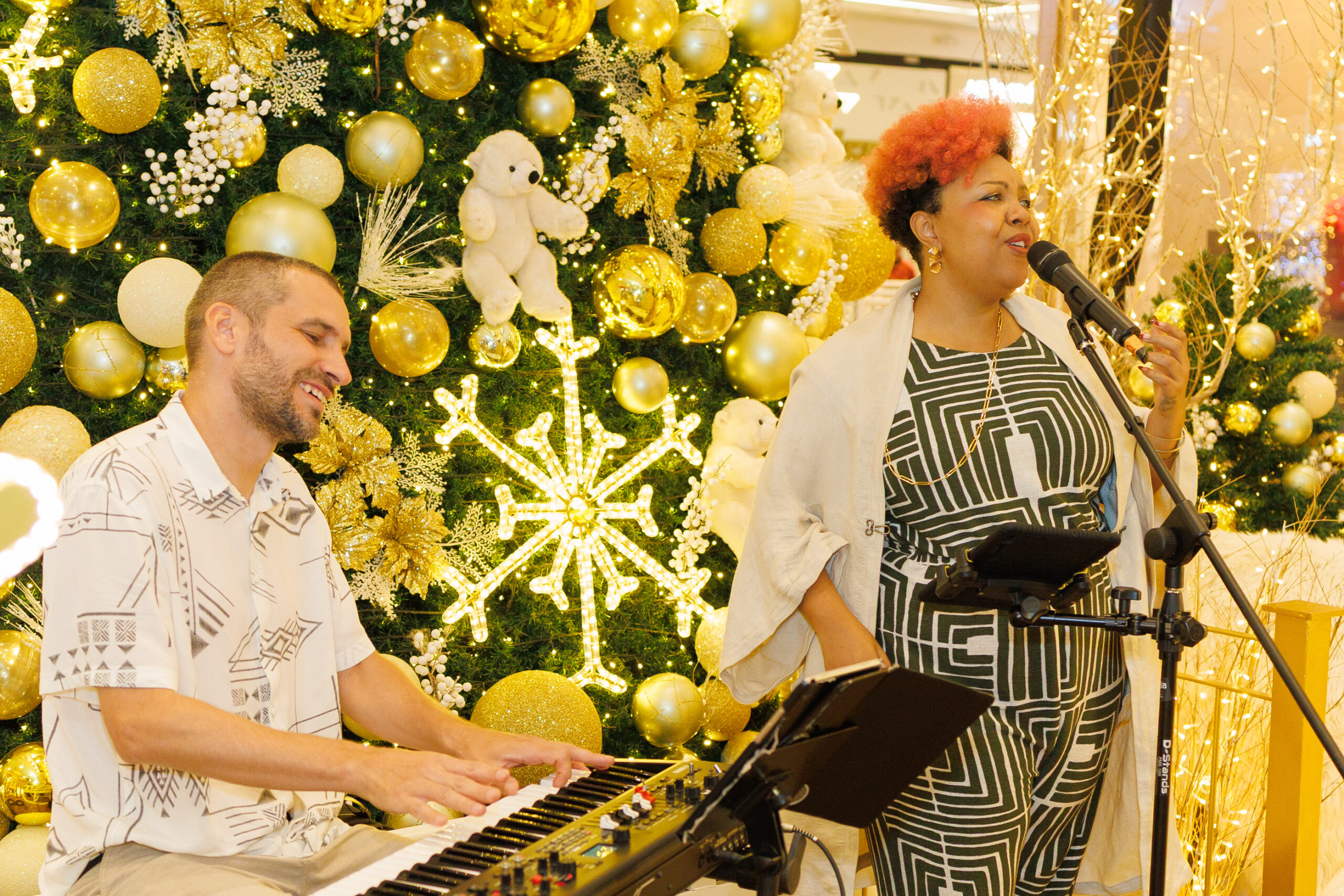 O gazebo localizado acima da tradicional árvore se transforma em um palco elevado, de onde artistas consagrados da cena brasiliense levam música, emoção e delicadeza às tardes natalinas. As performances acontecem de quarta a sábado, sempre às 18h, criando um ponto de encontro perfeito para quem deseja vivenciar o espírito do Natal de forma acolhedora e inspiradora.