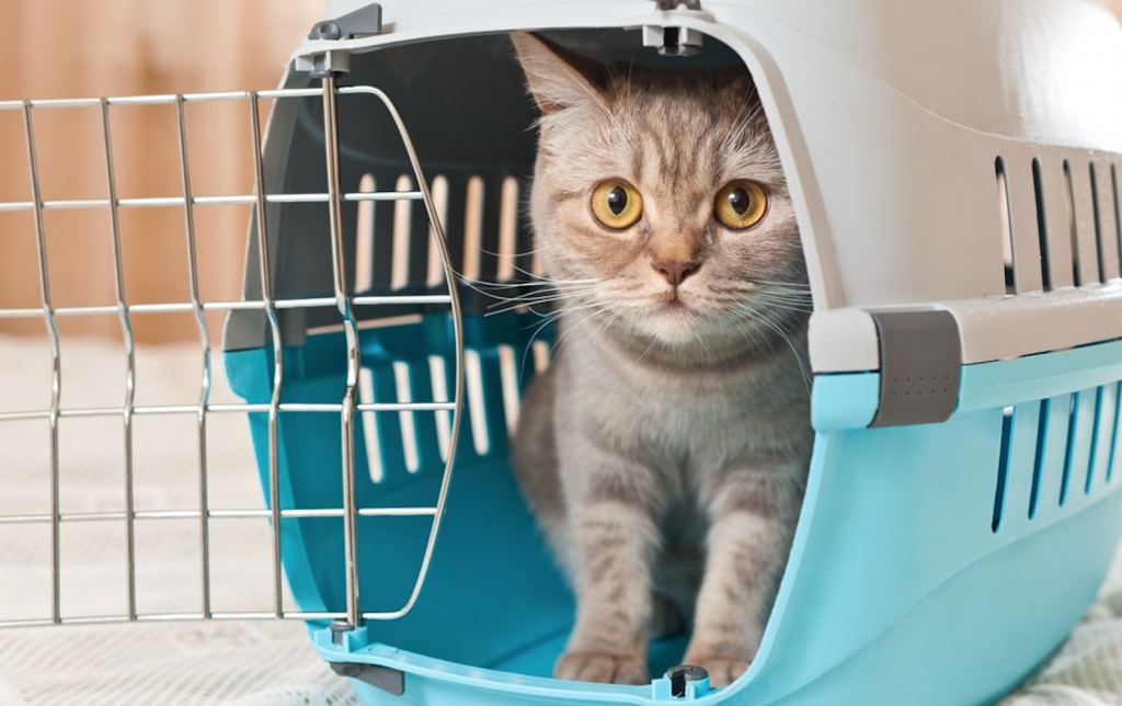 6. Para o deslocamento casa-carro/ carro-clínica e vice-versa, evite sacudir a caixa de transporte, encostar a caixa na parede ou portas ou colocá-la no chão de forma abrupta para não assustar o pet. Lembre-se que o campo de visão dele está limitado à portinha da caixa, e o ambiente externo confere odores desconhecidos até então.